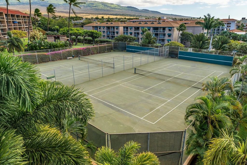 Maui Vista 2 bedroom 2 bath with large split Air Conditioner in living room and portable Air Conditioner downstairs bedroom. The upstairs bedroom and bathroom is an open loft. The laundry stack washer and dryer has been moved out of the kitchen into the bedroom to allow more room to cook. Watch the ocean over the trees while you sit on your lanai or from your kitchen. Sold turnkey fully furnished. Currently rented short term since 2008. Tennis or Pickle Ball courts, pools, barbecue areas across from popular Charley Young Beach.